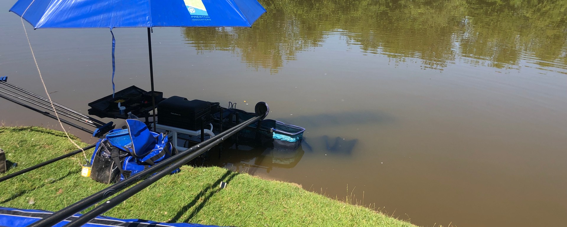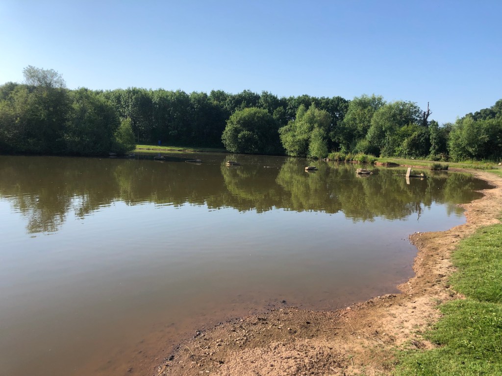 But how would it fish today on the hottest day of the year with temperature’s in the 30’s. Today was definitely a brolly day to keep out of the sun and the good thing about Pete’s pool is that half the lake has very shallow margins sloping from nothing to 2 foot before you get out into the deeper water. These areas are commonly called the Stones, the grass bank and then there is the deeps on the other side of the lake. I drew half way along the grass bank area. So it was a case of wearing a pair of shorts and going in bare footed to place my seat box in the shallow water. So although it was the hottest day of the year, I was cool all day long and I had the foresight to freeze a couple of bottles of water overnight which were lovely and cool as the sun thawed them out.
