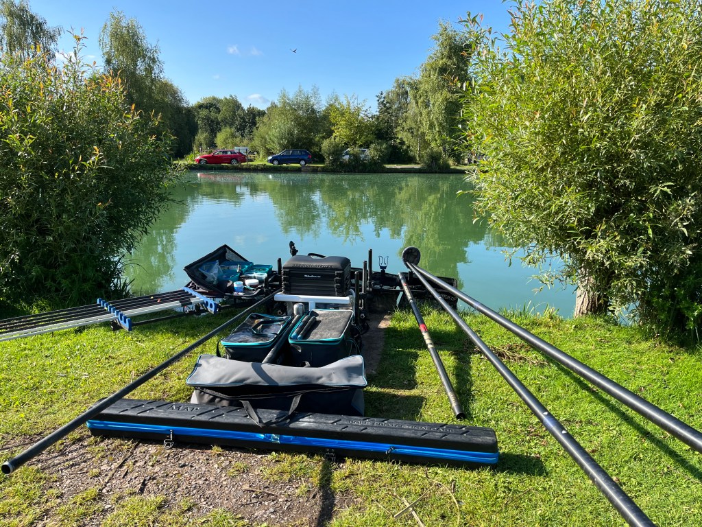 I drew Front Deans peg 31 an end peg today but really not where you need to be as the other end of the pool is better, but still an end peg, so all to play for! The peg has two trees either side and very close to where your sitting so I didn’t fancy the margins as I would be sat on top of any fishing fish. So I opted to fish a couple of short pole lines, hard pellets at 2+2 with a strung out rig and a bulk and droppers rig with corn and micro at 2+1 I also set up for shallow rig as back up but with the stung out rig this would tell me if the fish were up in the water.