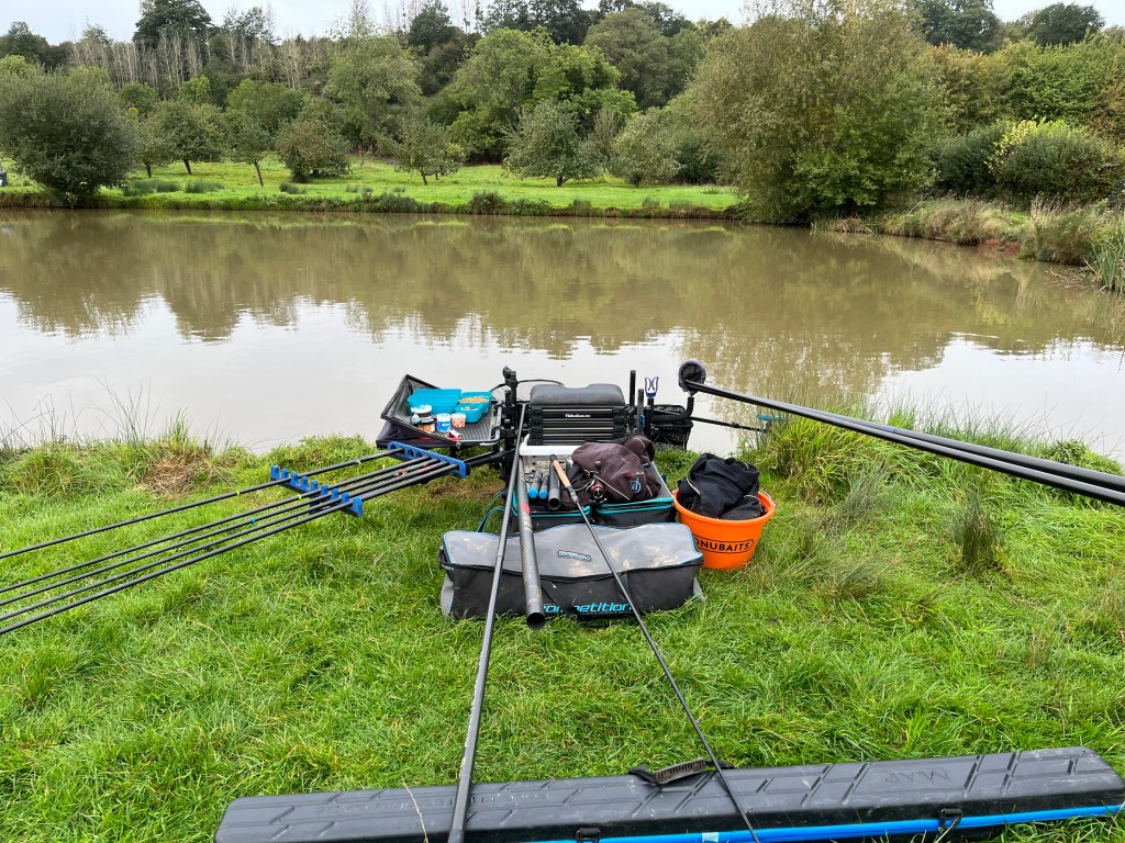 Plumbing up I found the silt started at a top kit +4 and I found a nice hard bottom at 2+3 to my left in 4 foot of water so I opted to start the match here with hard pellets while priming a shorter top kit +1 line in 3 foot of water to my right with corn and pellets. The margin into the corner also plumbed up well with 18 inches of water right in tight to the nearside bank. So the plan was to drop in there early if things weren’t going to plan. Every thing felt right today. The weather, dull and overcast, the end of September, No one on the far bank, an end peg with plenty of room until the next angler. I couldn’t wait for the all in !