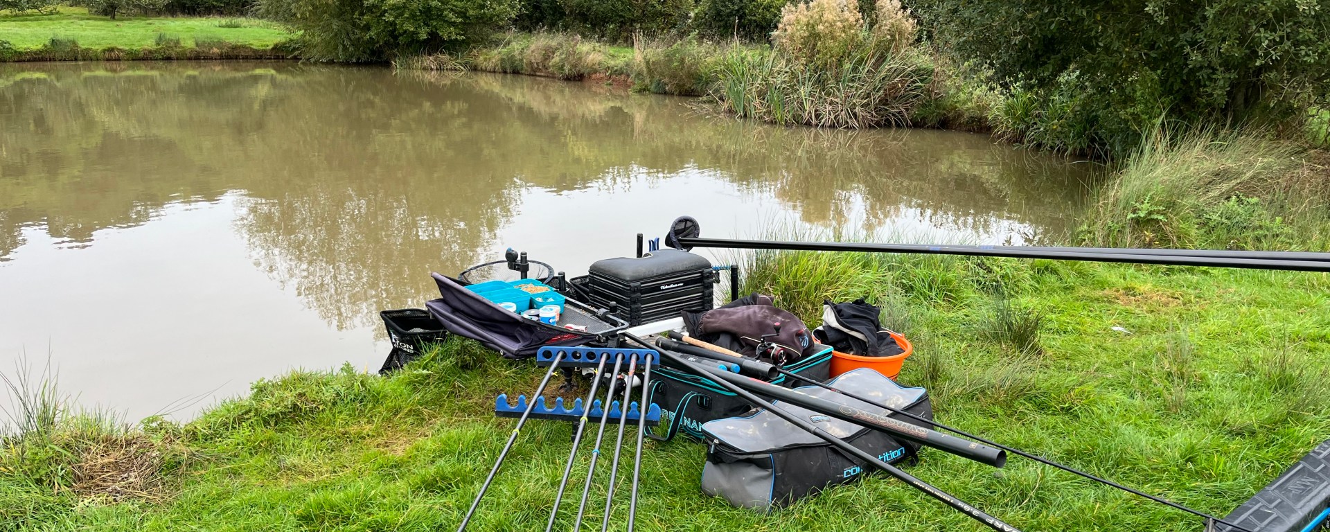 The last time I fished the pool I’d caught well on a short pole with corn and pellets so I planned the same attack this time. But with no one pegged on the opposite bank, I thought maybe the fish would back off so as well as a couple of short pole lines and the margin into the corner I set up a method for fishing over to the far bank. It turned out I didn’t need to throw it out!