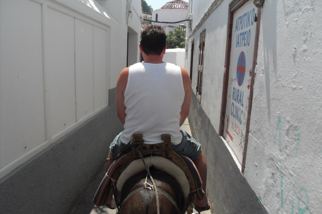 Later in the week, we drove down to Lindos, a picturesque village on the coast. The village was stunning, with its whitewashed buildings, narrow alleys, and beautiful beaches. We had lunch at a rooftop restaurant with a view of the sparkling blue waters below, enjoying a classic Greek salad. After lunch, we experienced a unique form of transport—a donkey ride up to the Acropolis of Lindos, perched high above the town. The ride was both fun and exhilarating, and the views from the top were absolutely breathtaking. The ancient ruins of the Temple of Athena Lindia were impressive, and standing at the top of the hill, it was easy to imagine the bustling life that must have once surrounded this ancient site.