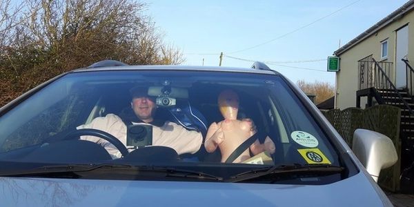 I was starving when I got back to Evesham so I decided to go through the drive-though for a Big Mac. When I got to the window the girl on the till couldn’t stop laughing. I couldn’t work out why until I looked to my left. The picture below taken on the last day before the drive home explains why!! I’d driven all up the M5 with Daisy by my side. (a present from the lads) I was wondering why lots of people where looking at me puzzled all the time.
