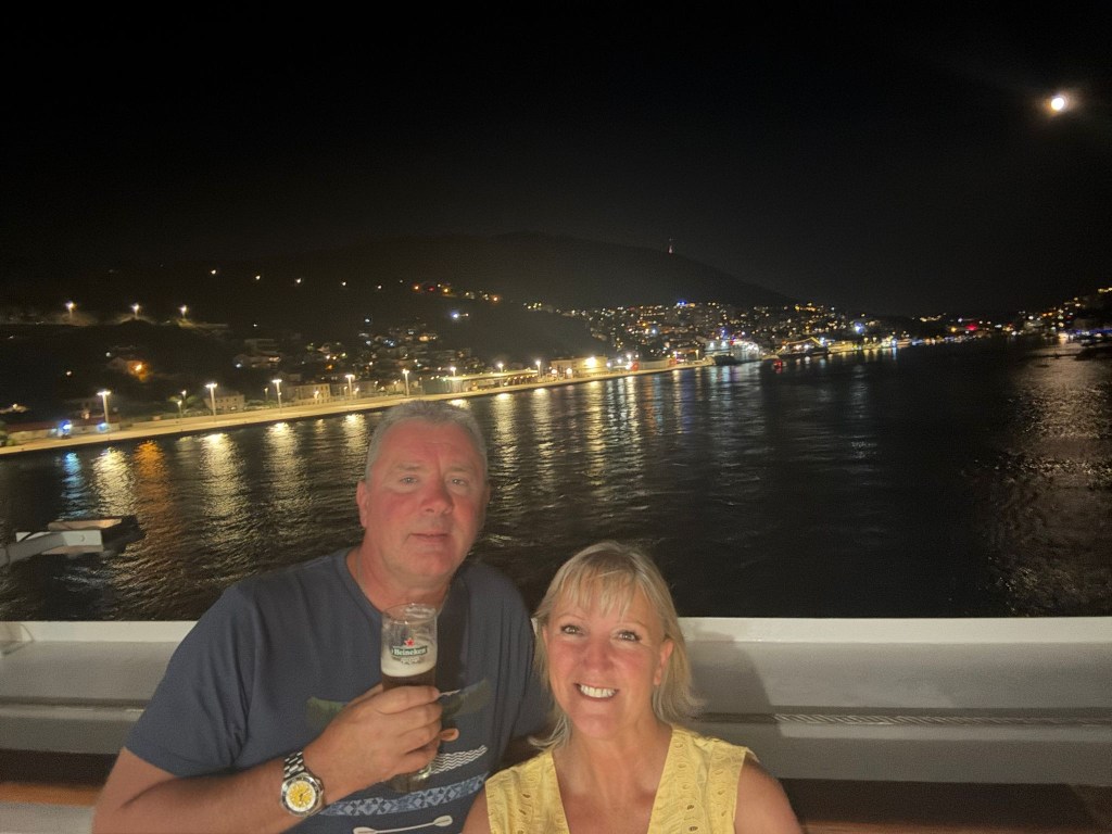 When we got back to the Ship for the evenings entertainment we learnt we were it! Our Cruise friends had signed us up the the Mr & Mrs show in the Squid and Anchor. Next day plenty of people kept coming up to us saying it was one of the best nights they’d had for ages, so I think we kept them well entertained.