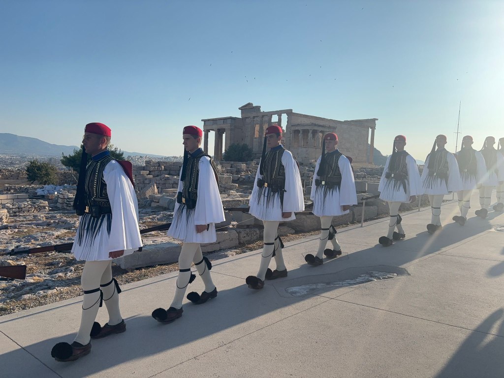 This was bucket list tick box day. So we were up early to beat the crowds and a quick 20 minute drive via taxi to get to the Acropolis where the views of the remains overlooking the city were simply jaw dropping. Then we walked 20 minutes into Athens so see the Olympic stadium and the soldiers changing the guard at the palace.