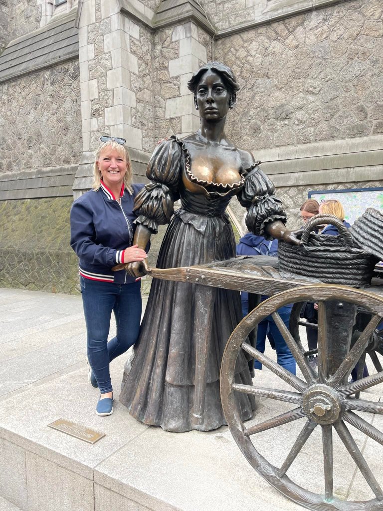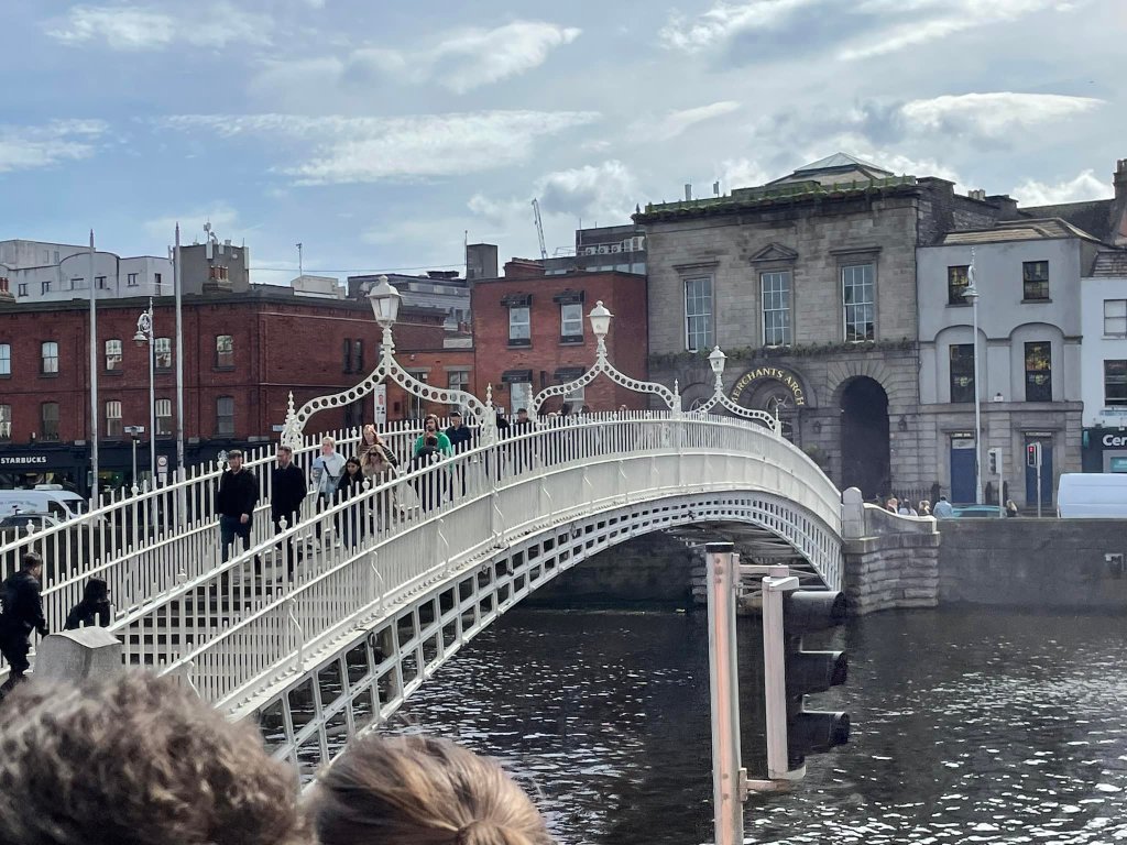 After the Guinness experience, we spent the rest of the day exploring O’Connell Street, Dublin’s main thoroughfare, lined with shops, statues, and street performers. We wandered over several bridges crossing the River Liffey, including the picturesque Ha’penny Bridge and the more modern Samuel Beckett Bridge, with its unique, curving design. Another highlight was seeing the famous Molly Malone statue, a tribute to the legendary Dublin character and the city’s rich cultural history.